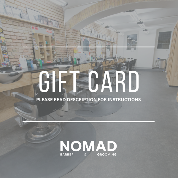 Once you have purchased your gift card, please email bln@nomadbarber.com with your gift card instructions and we will send you your digital gift card to the recipient. Please include the email, name and message for the recipient. Please note that if you wish not to show an amount on the card, please purchase a service instead.